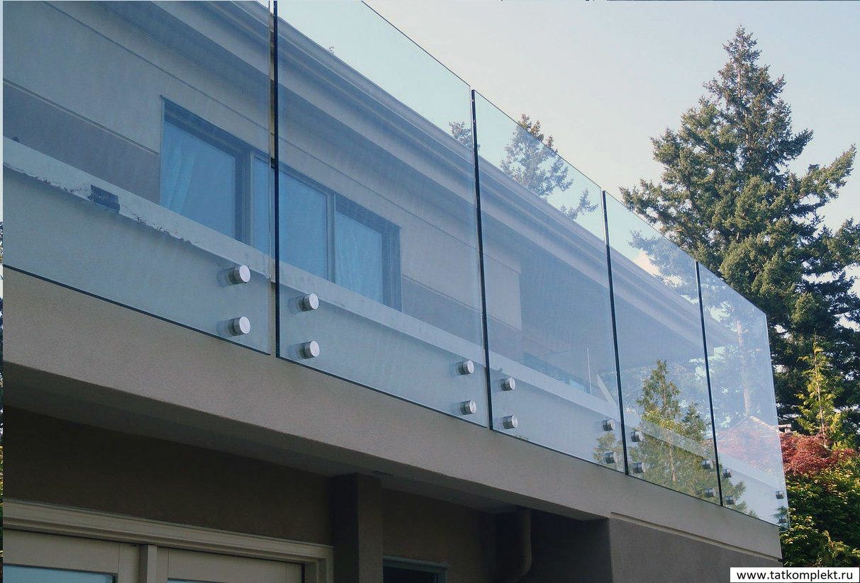 Стеклянные ограждения балкона на точечных креплениях с поручнем из нержавеющей стали aisi 304